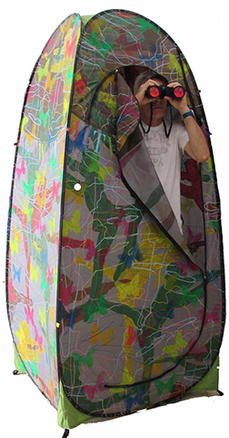 "Artwatching" 2014 - tecnica mista su tenda, cm. 205 x 95 x 95 circa