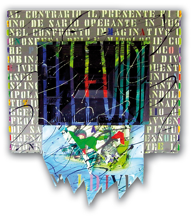 Televide, 1990 - tecnica mista su materiali vari, cm. 120 x 102 x 17